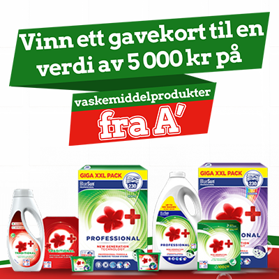 Vinn ett gavekort til en verdi av 5000 kr på vaskemiddelprodukter fra A+